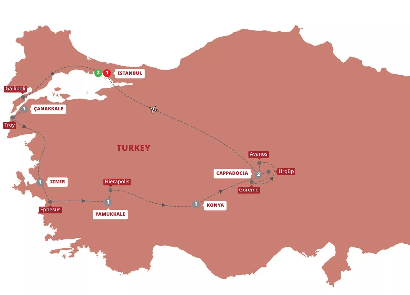 • 10-day Turkey Highlights from Istanbul: Visit 14 cities including Ephesus & Cappadocia. Stroll the Grand Bazaar and ancient East-West trade routes.