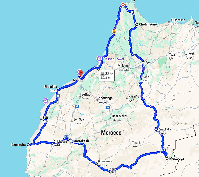 Discover the magic and diversity of Morocco on this immersive 17-day Hosted Africa journey. Starting in Casablanca and travelling through Rabat, Tangier, Chefchaouen, Fes, the Sahara Desert, the High Atlas, Marrakech and Essaouira, this tour showcases Morocco’s royal cities, ancient medinas, dramatic landscapes and coastal charm. Highlights include exploring Tangier’s storied medina, wandering the blue-washed lanes of Chefchaouen, uncovering the treasures of Fes, tasting wine in the Meknes region, witnessing the grandeur of Roman Volubilis, and spending two unforgettable nights in a luxury desert camp in Merzouga.